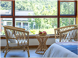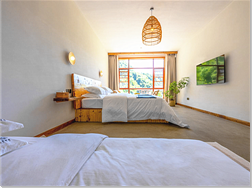 民宿設(shè)施齊全,服務(wù)功能完善,室內(nèi)裝飾到位,客房整潔寬敞,床上用品舒適柔軟,躺在床上可享受山村清晨第一縷陽光的沐。黄鸫餐拼氨M情的呼吸清甜的空氣,眺望遠(yuǎn)出或隱或現(xiàn)的云霧纏繞在山巒之中,好一幅山村如畫的美景。