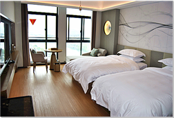 酒店客房寬敞舒適每個(gè)房間均配有獨(dú)立衛(wèi)生間、電視、空調(diào)和無(wú)線WiFi。均配有中央熱水器,24小時(shí)供應(yīng)熱水,床單被套一客一換。